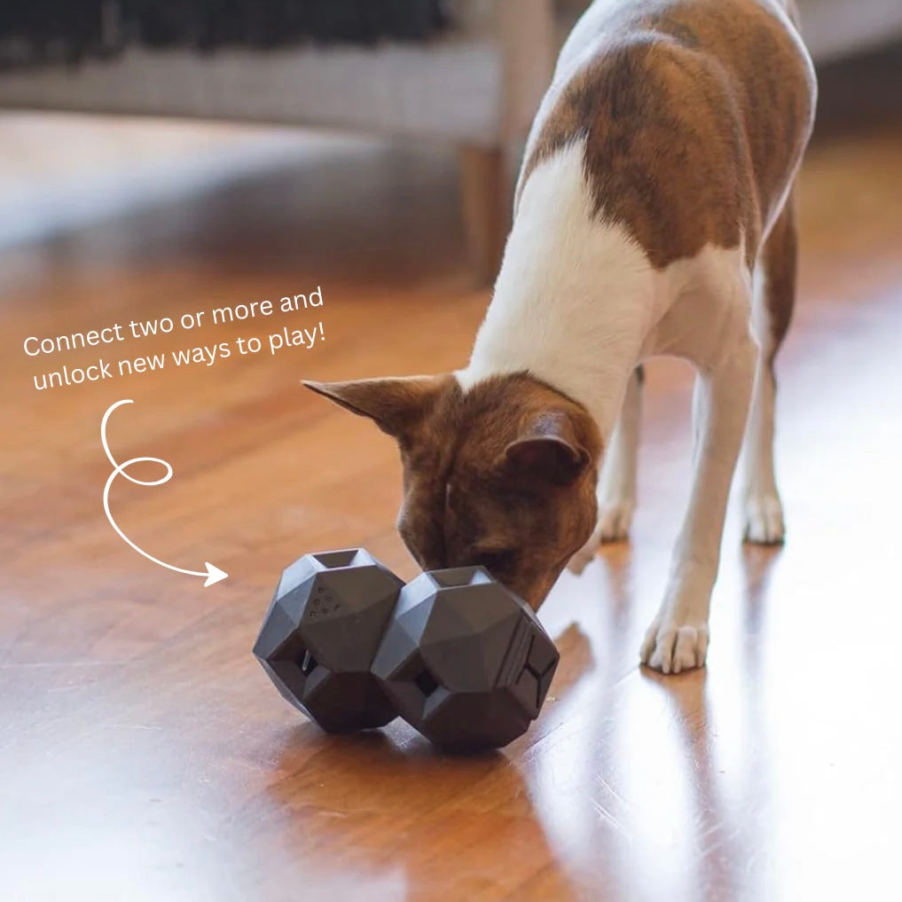 - The Odin treat dispensing toy for dogs features an engaging modular design to keep your dog mentally stimulated during playtime.