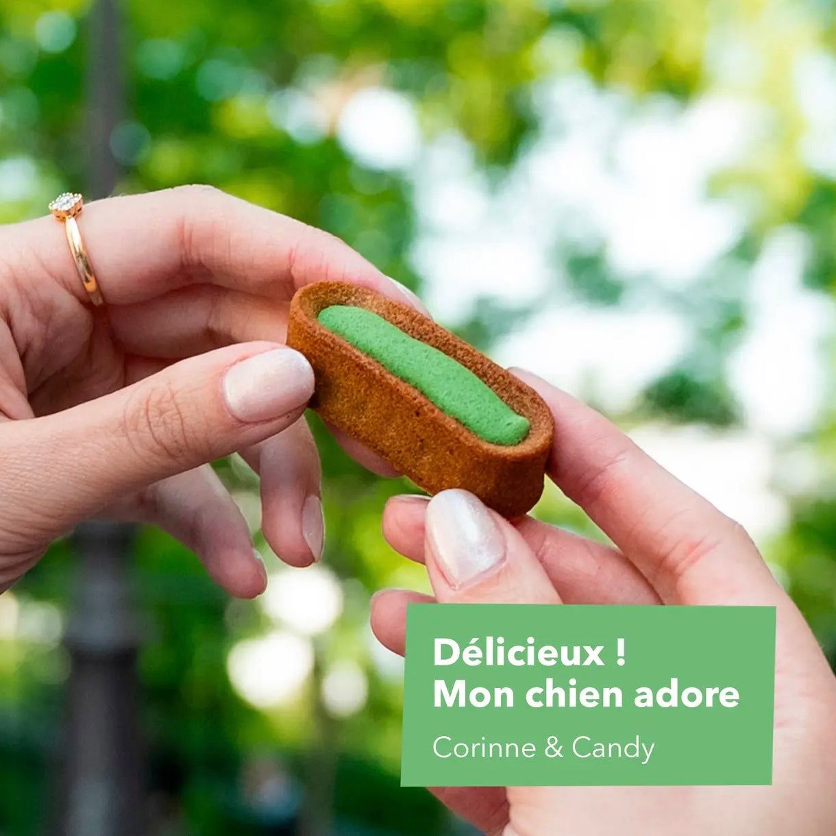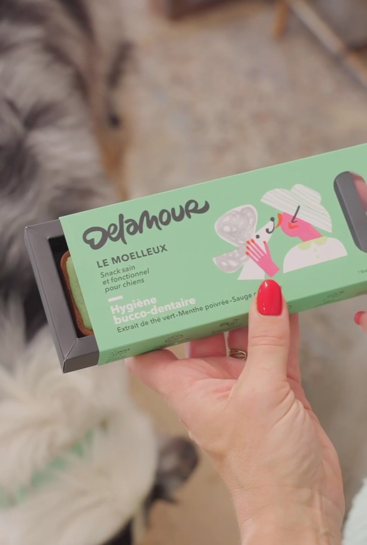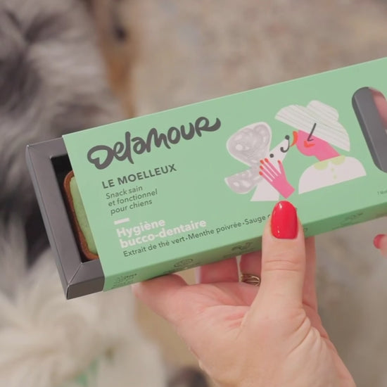 Les Moelleux are crafted in Le Mans (France) for Delamour by a master pastry chef : Vianney Bellanger. Developed in collaboration with a veterinary doctor specialized in animal nutrition, Le Moelleux is a perfectly balanced dog snack tailored to the specific needs of every dog.