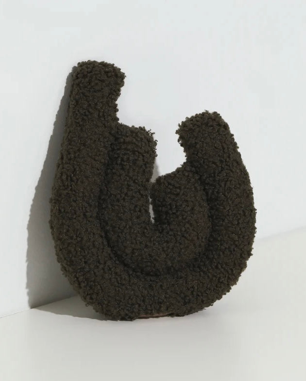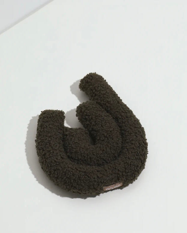 Our Modern Minimalist Dog Toy: The Tubes plush toy is made in classic Pruff boucle fabric and contains a flexible rope inside the outer tube. This neutral colored dog toy is great for quiet play and chewing.
