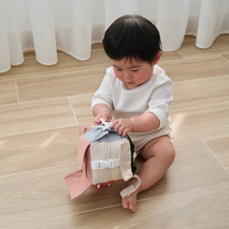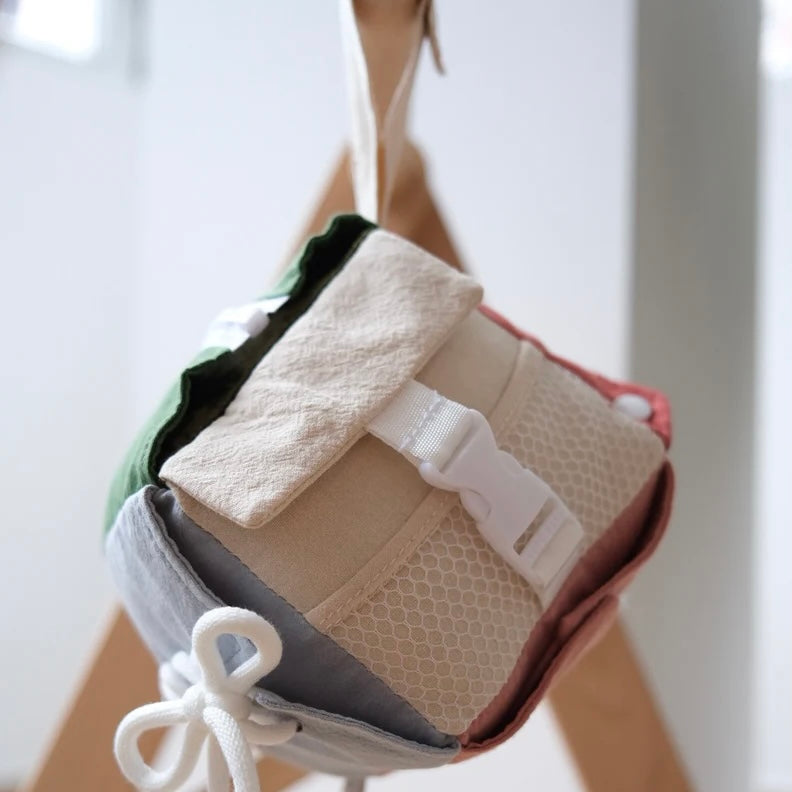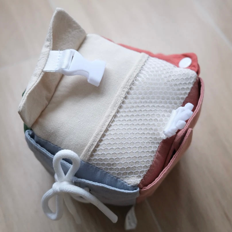 Provide our BUSY CUBE to your little one and let them learn 6 different essential ways of dressing themselves. Perfect to teach them to use their fingers and practical life skills!