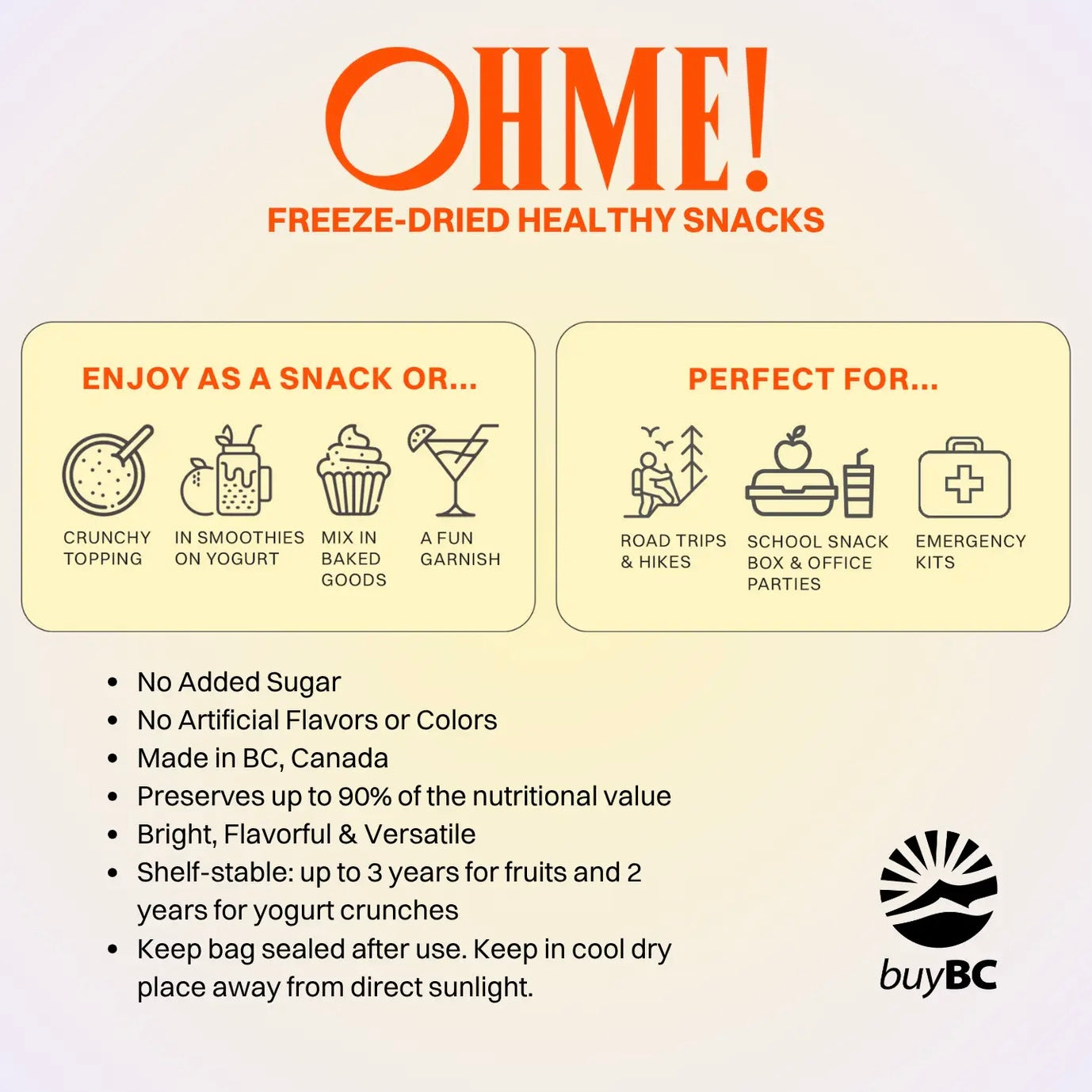 Thanks to a gentle freeze-drying process, the fruit retains up to 95% of its nutritional value, while remaining lightweight, crunchy, and easy to enjoy anywhere. Shelf stable and long-lasting, they’re a convenient and healthy choice for everyday life.