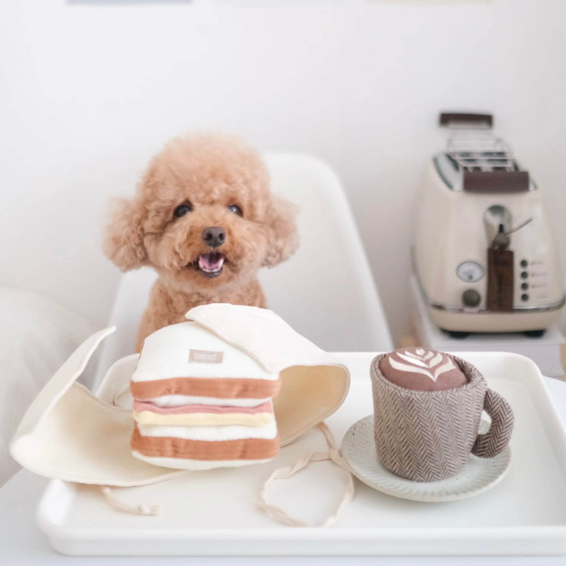 DOGS AND COFFEE and finally here's the LATTE POP to complete your cafe hopping life. The "coffee" (with latte art) pops out from the cup where you can also hide treats as a burrow toy. Enjoy your daily dose of caffeine together with your pup now!