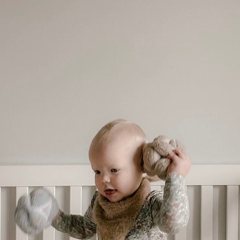 Your little one will love this soft Montessori puzzle ball with sensory beads inside. The mix of teddy and baby plush textures will stimulate your baby's fingertips, and like many of our products, MONTI can be used through different stages of development.