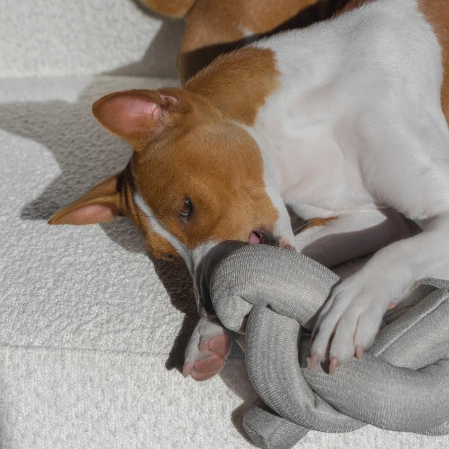 At the studio, these are the design questions we had: how can one toy stays interesting for longer or how can it be played differently every time? How can this object be a dog thing but also a human thing? How can its form challenge the pet but also our own creativity? Nou is that answer.