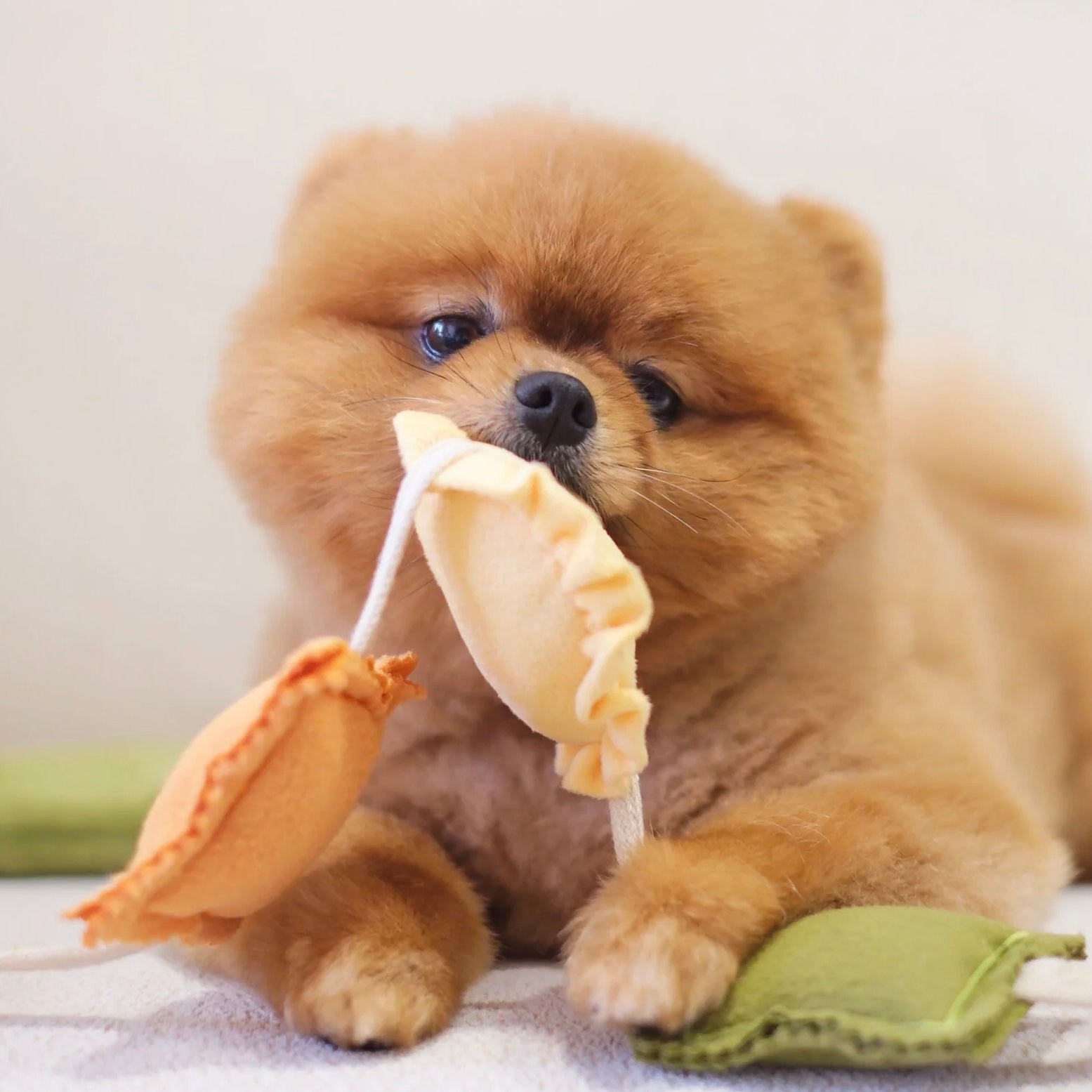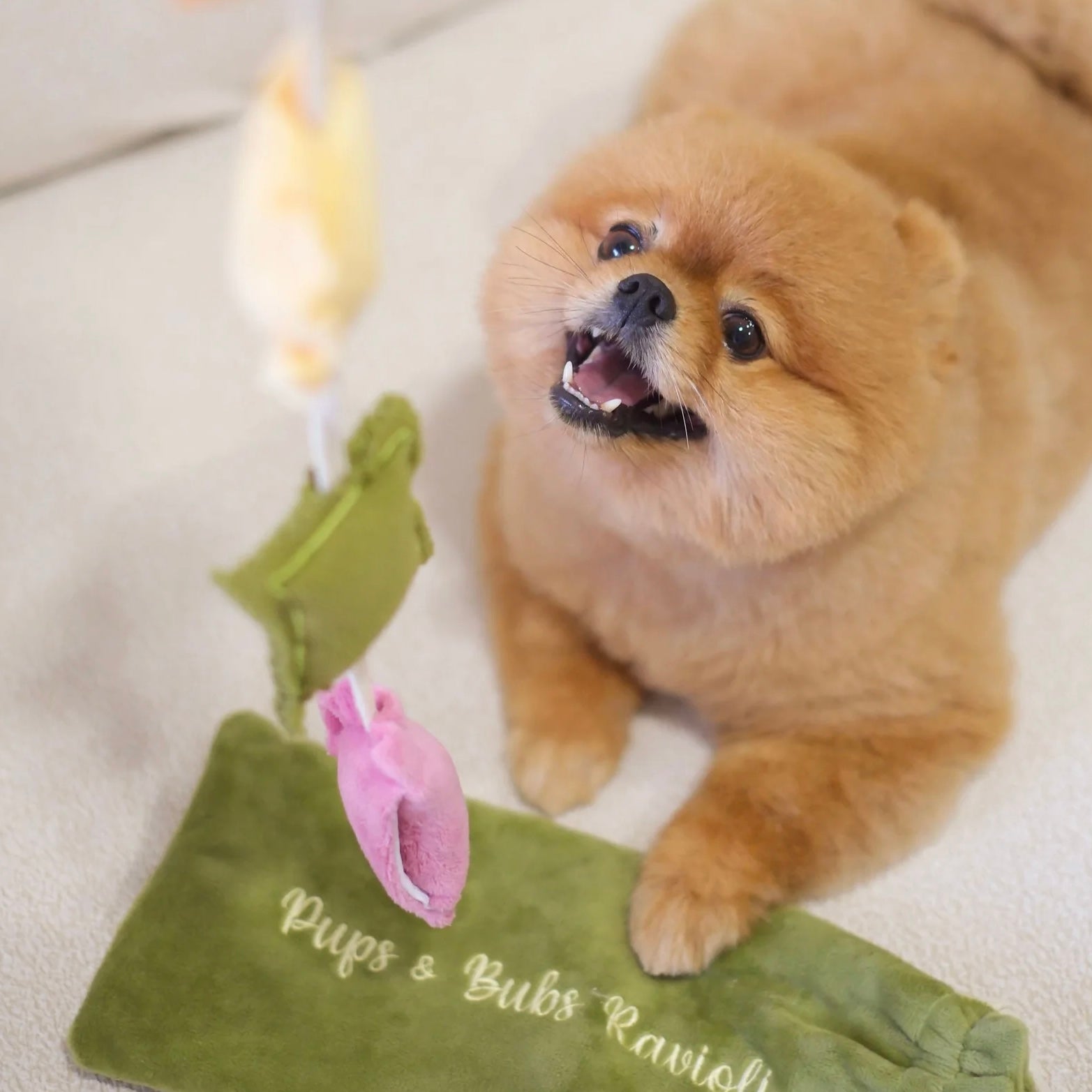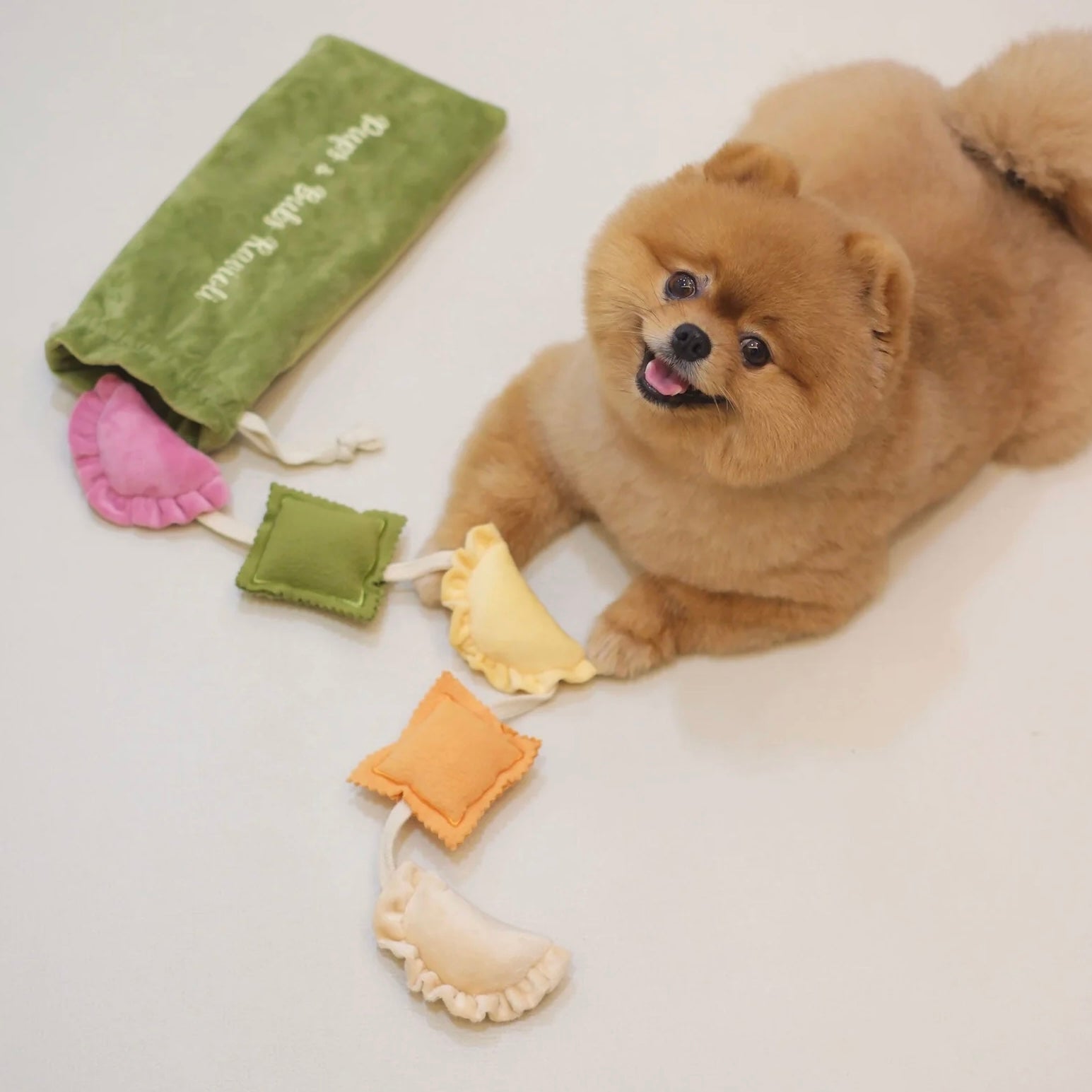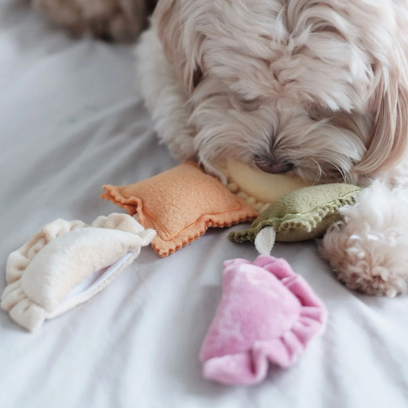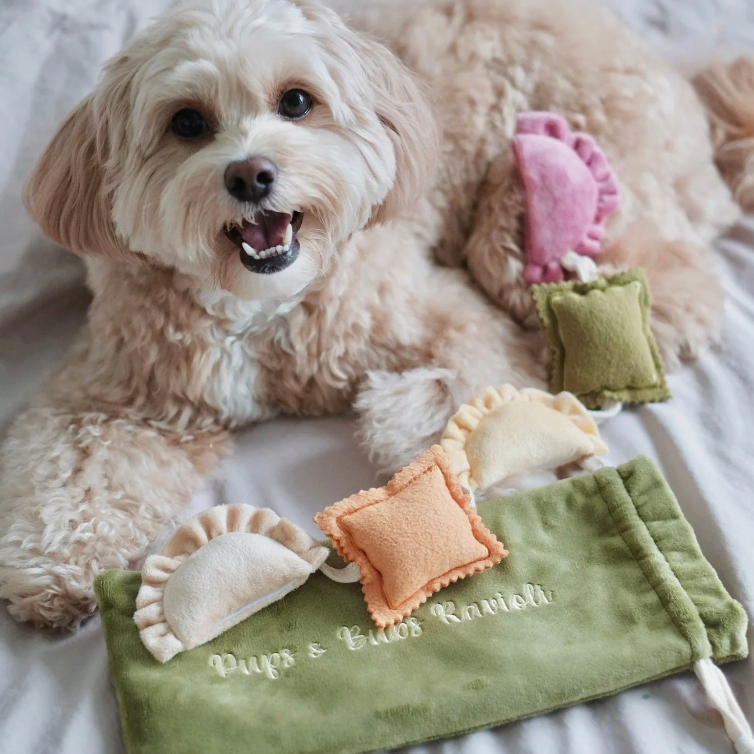 Hand made fresh everyday, this artisanal Ravioli Nosework Toy will keep your pup deliciously entertained! With a variety treat pockets, squeakers, crinkle paper and even adjustable difficulty, this is the ultimate stimulation for pups that love a challenge.