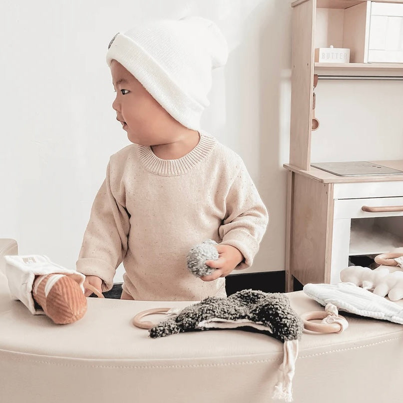 all fabric + internal fills of our play materials are safety tested to be free of toxins or heavy metals