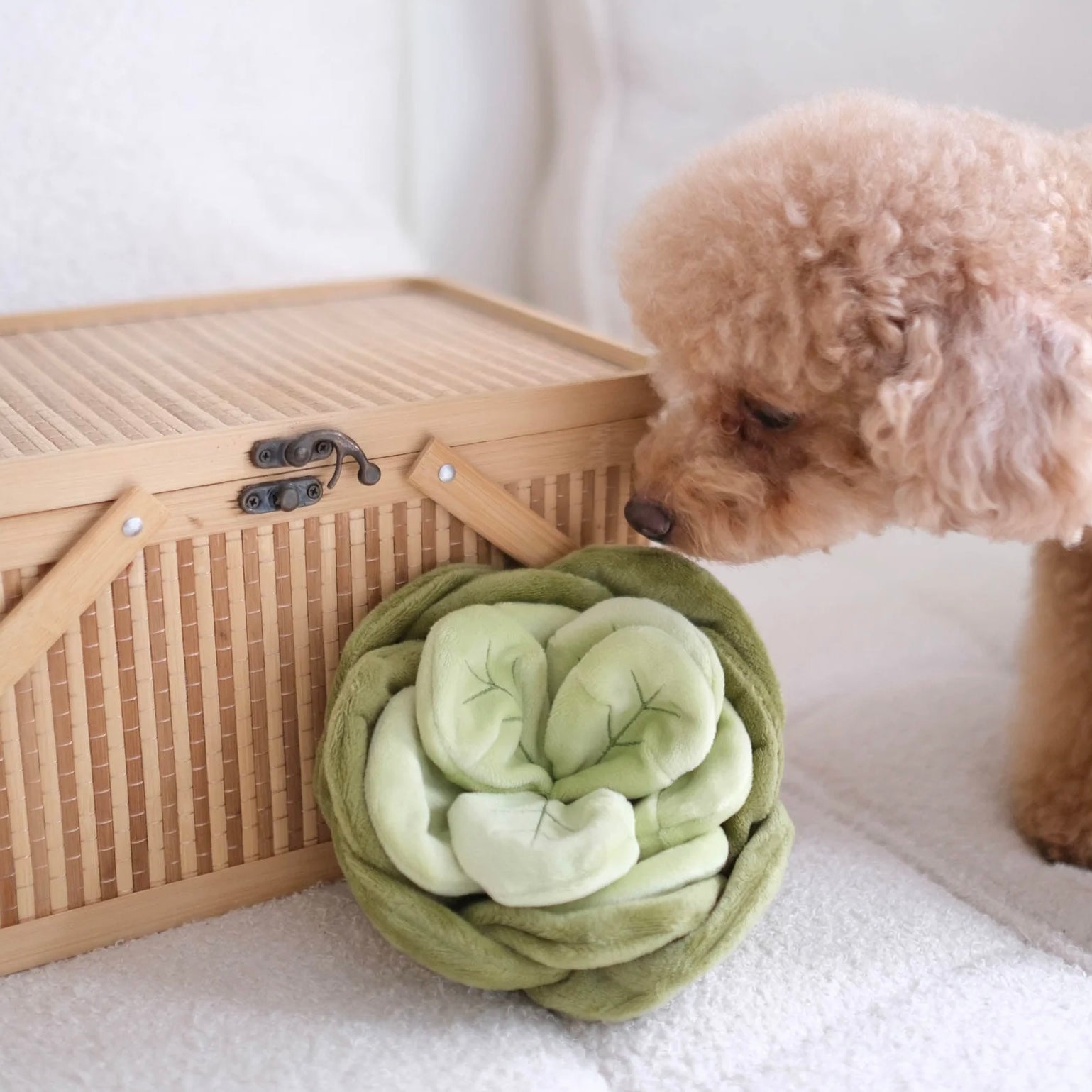 Harvested straight from our nosework farm, the Snuffle Cabbage is perfect for pups that love a good sniffing. It's made with layers and layers of crinkling cabbage leaves, so treats can be hidden under every layer. Uniquely sewn into a bowl-like shape, the leaves keep the treats in and helps keep your pup engaged & mentally stimulated throughout.