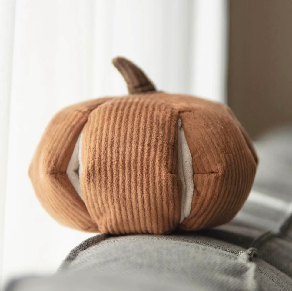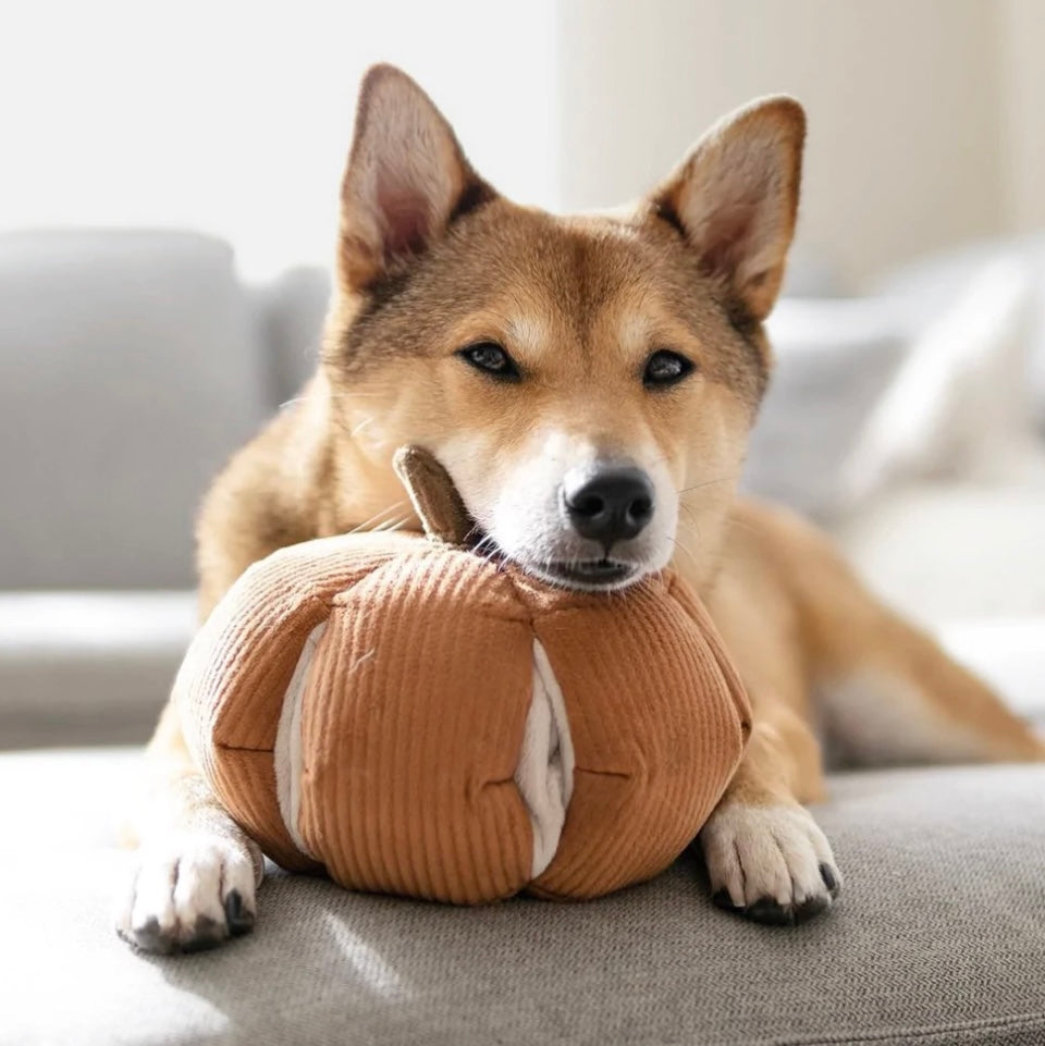 Our enrichment CINDERELLA pumpkin features 6 treat pockets that open sideways as the snoot make its way in! This is a large pumpkin recommended for M-XL size pets and each has 6 squeakers inside for some extra fun.