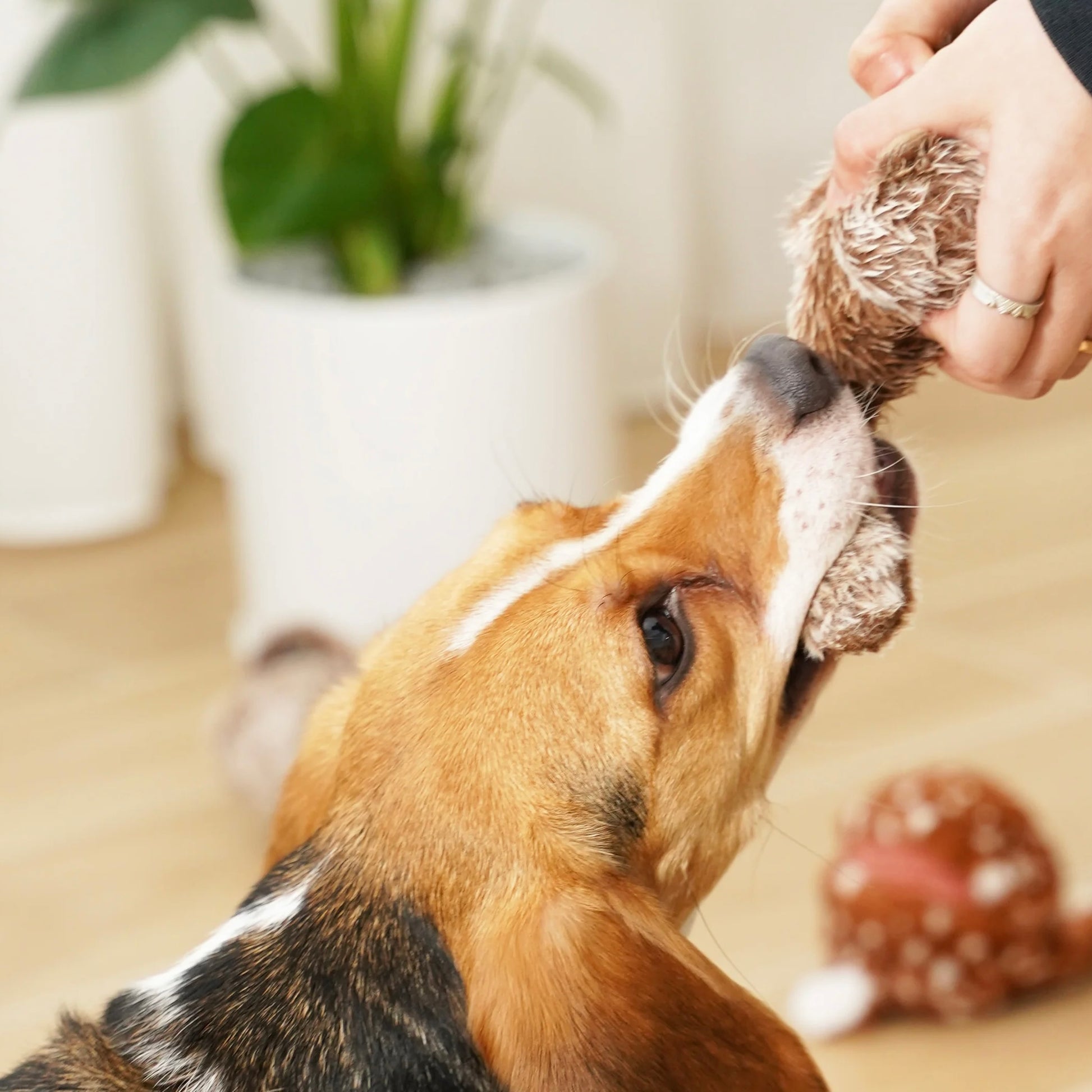 POP combines all the fun of popcorn, balls and furry plush animals into one! The teddy wrapped TPR squeaky ball is not only durable but also soft on the canine mouth, it wears a squirrel coat that can be taken off and washed regularly. This play object is perfect for pups who love balls and squirrels!