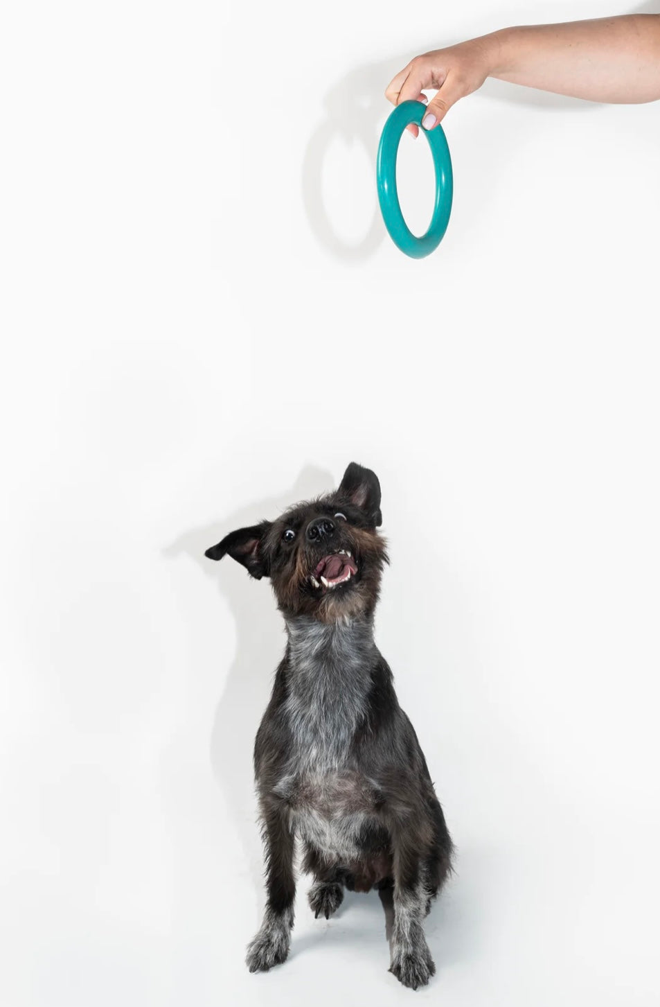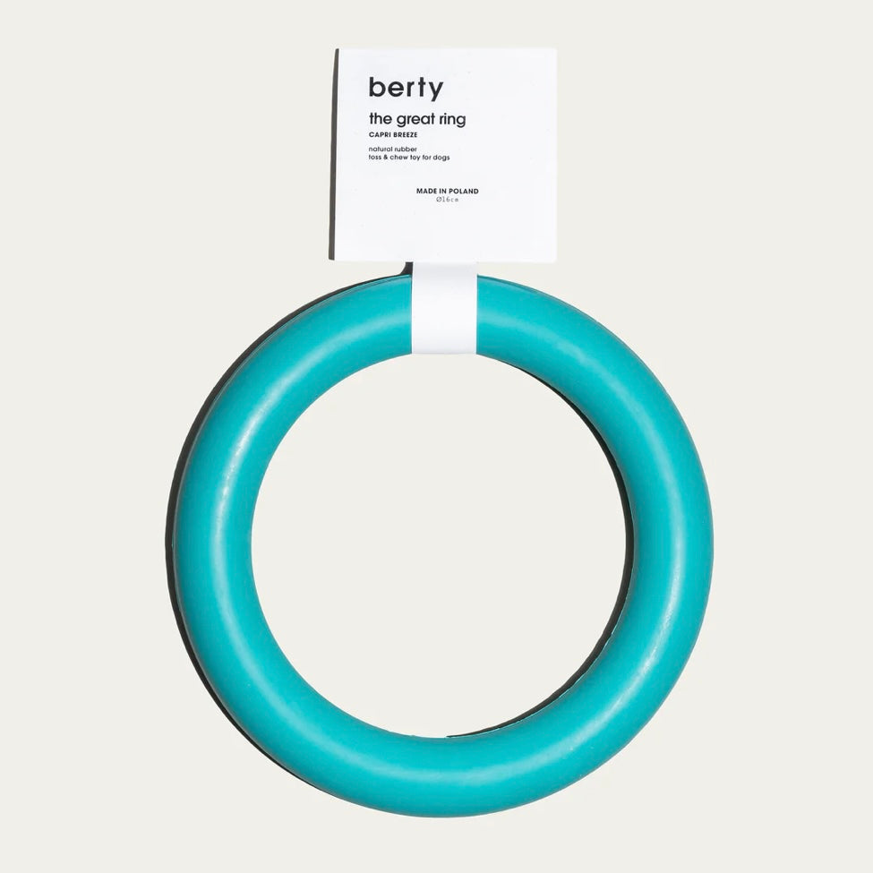 A natural rubber toss&chew toy for dogs. Available in two different shades, Capri Breeze and Oyster.