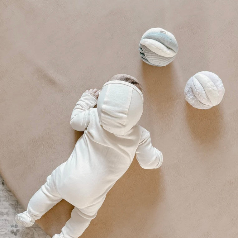 Your little one will love this soft Montessori rattle sensory ball inside. The mix of knit, corduroy, fleece and baby plush textures will stimulate your baby's fingertips, and like many of our products, TOTO can be used through different stages of development.